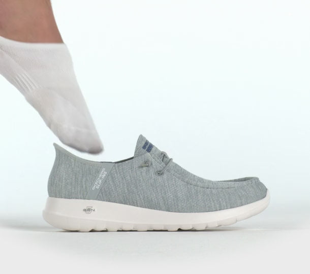 Step up your routine with easygoing comfort wearing Skechers Hands Free Slip-ins®: GO WALK® Max - Free Hands. Designed with their exclusive Heel Pillow™, this moc toe style features a heathered knit upper with a cushioned Skechers Air-Cooled Memory Foam® insole and lightweight 5-GEN® cushioning.