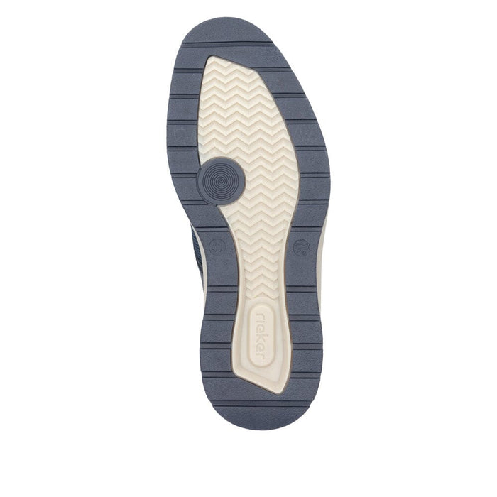 Easy walking, easy living! These pacific blue Rieker shoes for men impress with real comfort for your feet. There is no need to fasten the shoe, as the elastic shaft edge makes the shoe quick and easy to put on. The non-slip sole provides optimal grip with every step. On top of that, the extra soft insole provides an extra portion of comfort. Fashionable wellness feeling in this Rieker style!